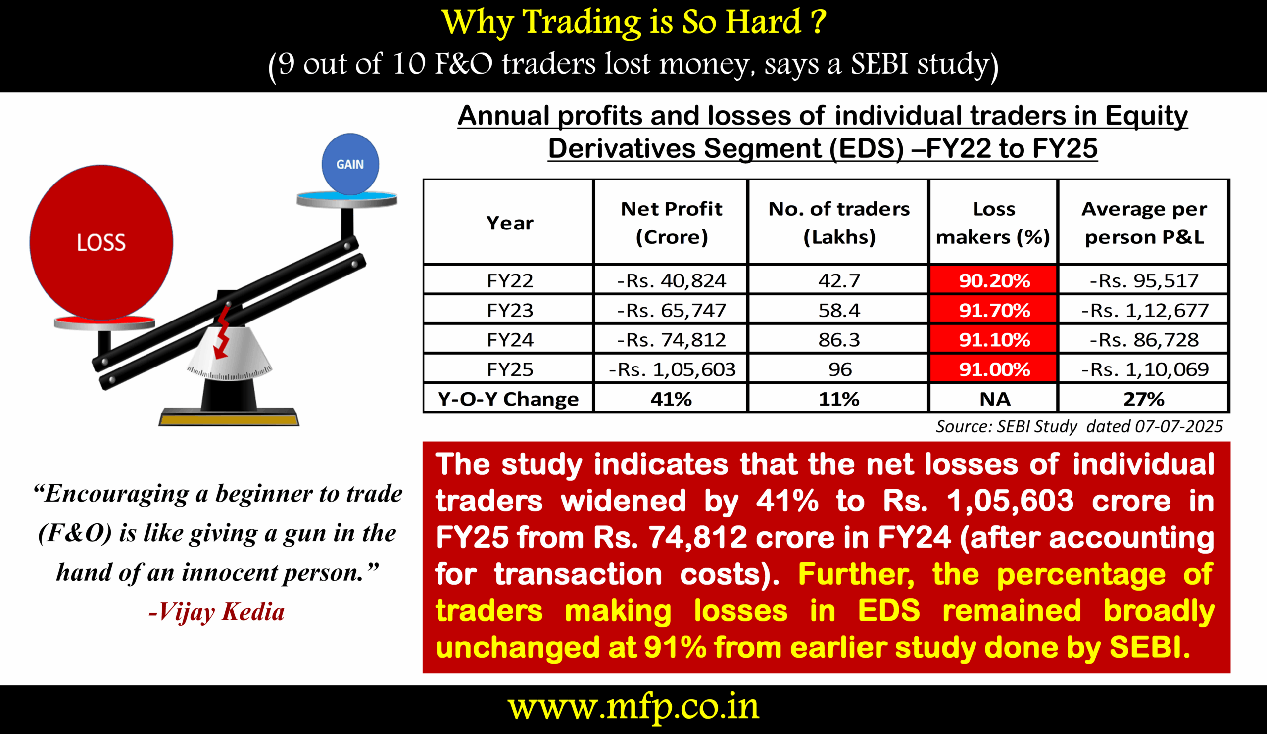 91% of individual traders saw losses in equity derivatives segment, finds SEBI study (SEBI)